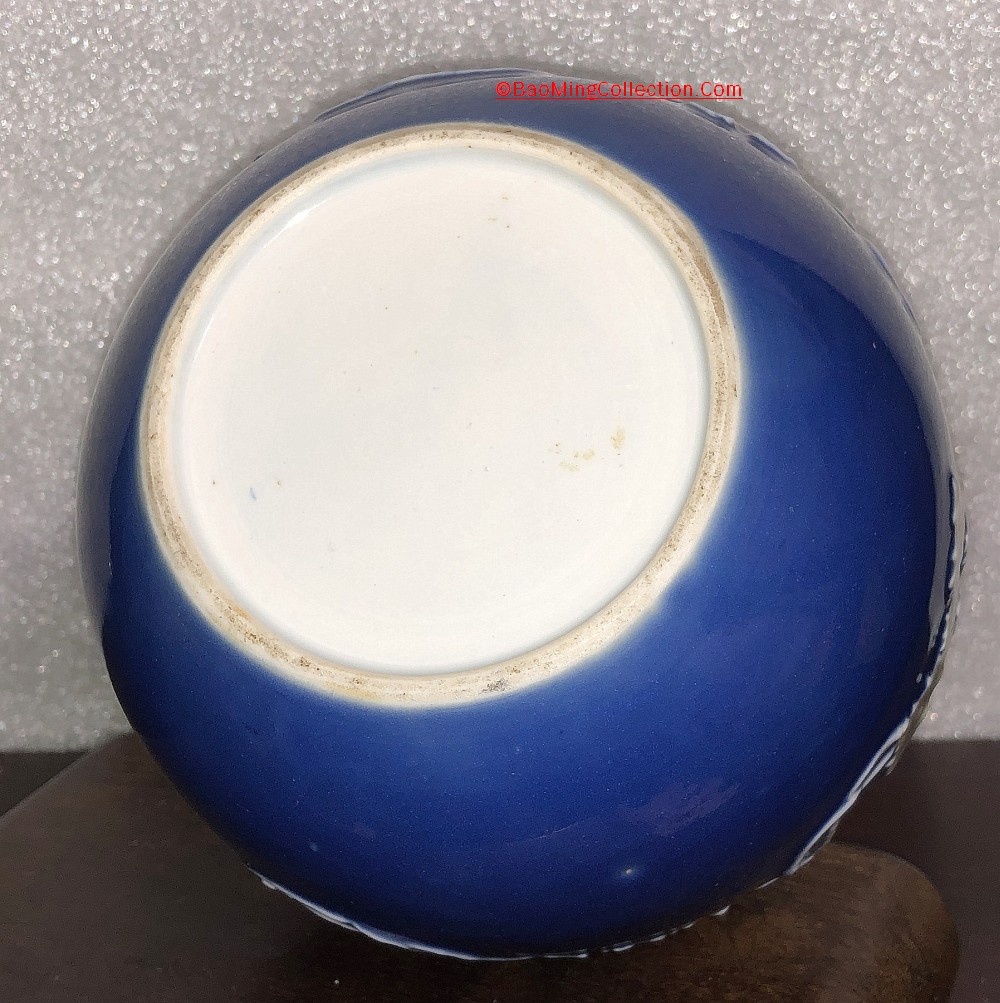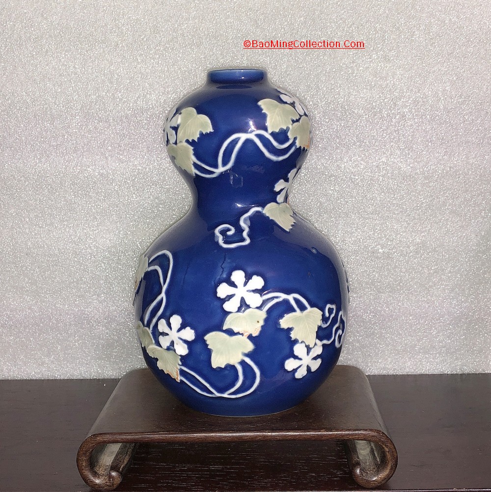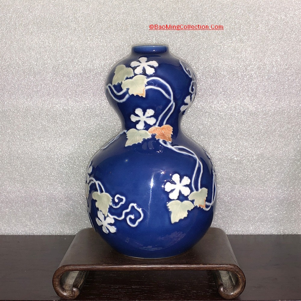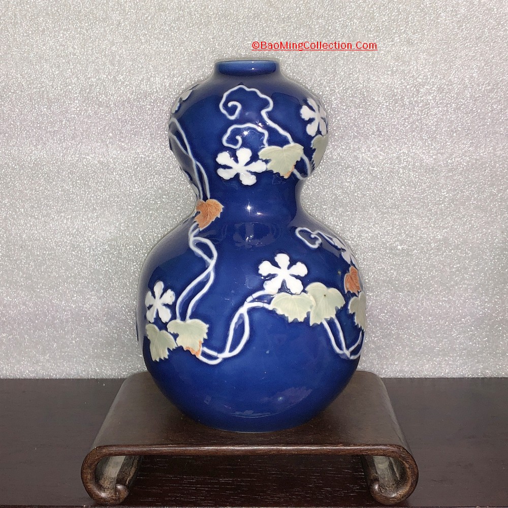 Personal Collection. Item is not for sale. A rare Japanese Hirado ware with blue glazed ground and mold decoration of five star jasmine flower and vines.